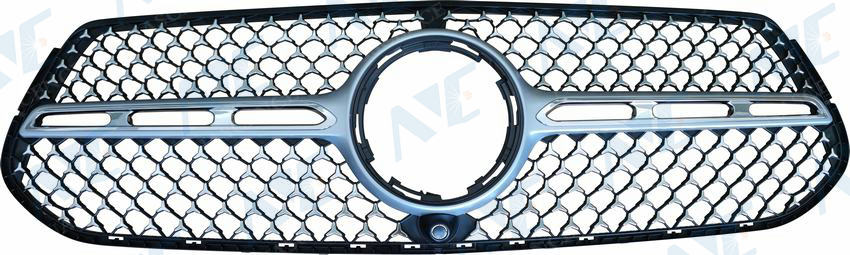 DSCP :ABS MAT-BLK W/PAINTED-SILVER FRAME W/CHROME MOULDING W/CAMERA HOLE DIAMOND HONEYCOM