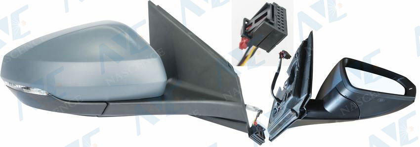 DSCP :ELECTRIC HEATED ASPHERICAL W/BLIND SPOT MONITOR FOLDABLE W/INDICATOR 10 PINS PRIMED E-MARK LHD